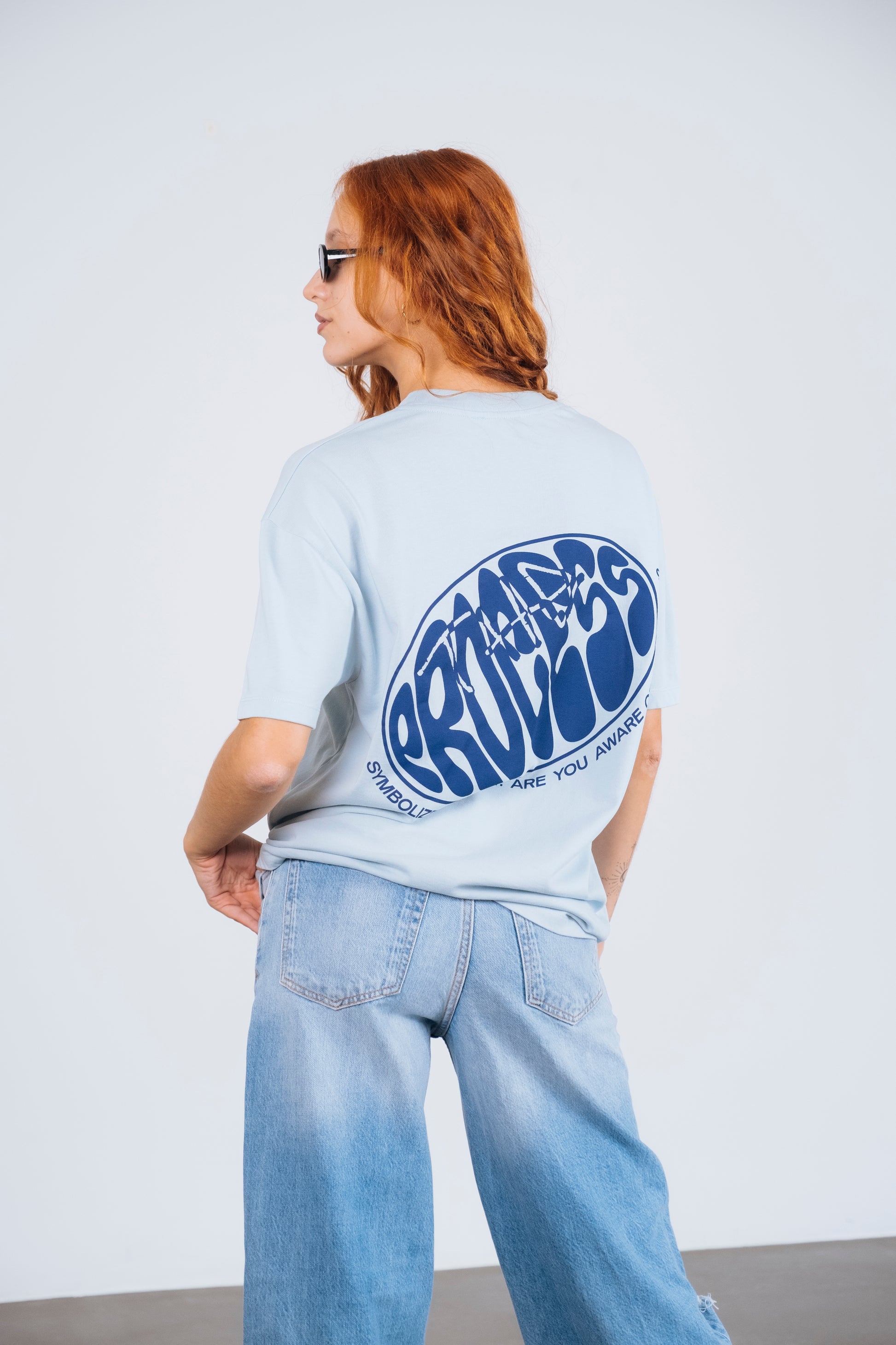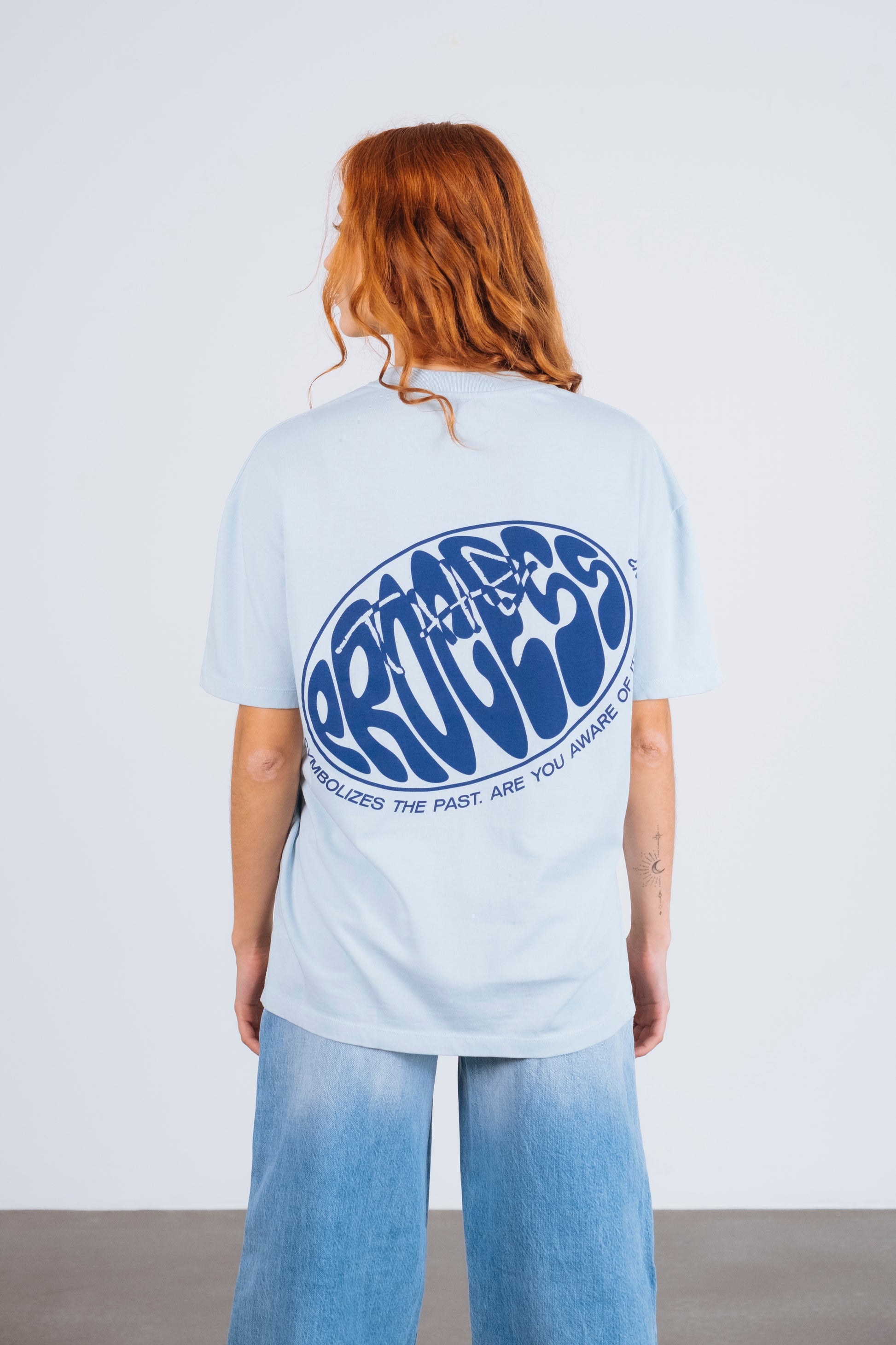 MADE IN PORTUGAL, THIS 100% LIGHT BLUE COTTON T-SHIRT DEMANDS ATTENTION. FEATURING A BOLD, DARK BLUE GRAPHIC, IT REMINDS YOU TO LEARN FROM THE PAST WHILE PUSHING FORWARD. HIGH-QUALITY DESIGN MEETS A RAW, EDGY VIBE—UPGRADE YOUR WARDROBE WITH THIS STATEMENT PIECE THAT'S AS COMFORTABLE AS IT IS POWERFUL.